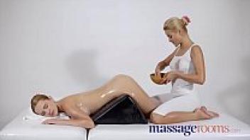 Rooms for Massage Lesbian oil massagers Kaisa Nord and Cherry Kiss are scissoring.