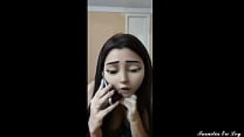 My lustful sister-in-law sucks my cock while chatting with her husband, NTR JAV, on her cell phone.