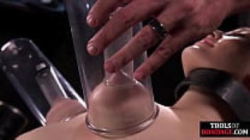 Busty babe naked in bondage video