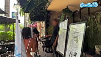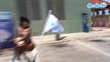 A big-ass beach girl rides a stranger's cock until he cums within.