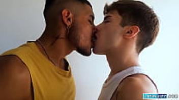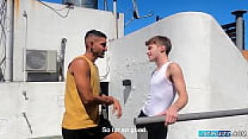 Before David Torres gives up his hole and gets a good beating, the new guy in town, Blu Twink, licks his cock.
