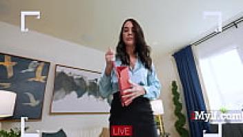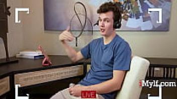 Stepson and the attractive stepmother engage in a live stream.