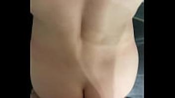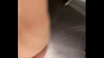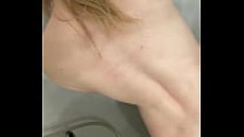 Vertical video portrait mode of a skinny amateur couple having sex in the shower