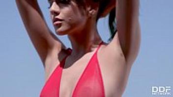 Watch Janice Griffith, a gorgeous and seductive woman, touch her shaved pussy besides the pool.