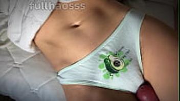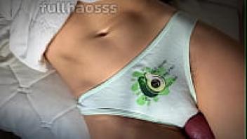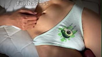 Cum on a hairy, wet pussy and massage panties with a large dick