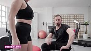 Rough sex with her muscular, huge-cock personal trainer as a hardcore amateur blonde Latina with big boobs and a big ass