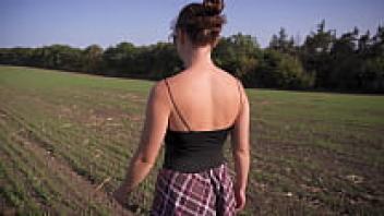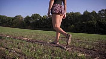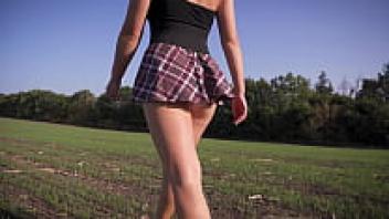 A gorgeous girl in a school uniform walks outside while flaunting her full back panties and upskirt.