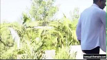 Gabriel gets a tight ass ram from a brunette Tgirl.