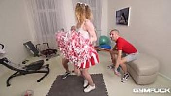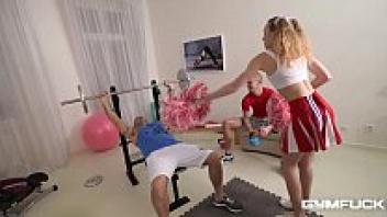 Love at the gym with a cheerleader Two dicks smash Angel Emily's ass.