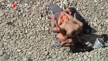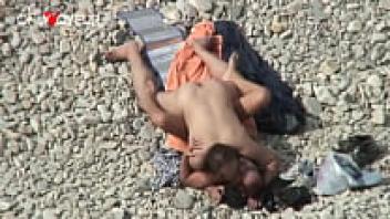 Voyeur Beach. A well-proportioned teenager having sex on a public beach