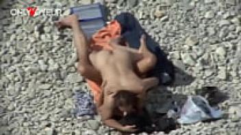 Beach Voyeur. Horny teen babe rides her boyfriend on the beach