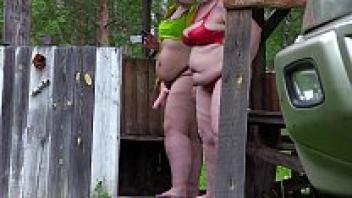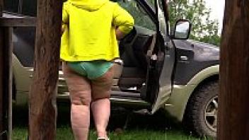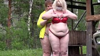 Voyeur outside eavesdrops on the production of a pornographic film by two mature lesbians. Behind the scenes, a fat milf with a large ass. Fetish.