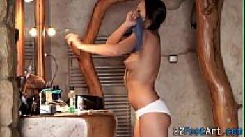 Addison, a gorgeous adolescent girl, gives her big, greasy feet a footjob!