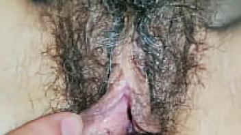 Close-up of a hairy pussy