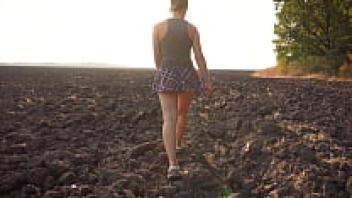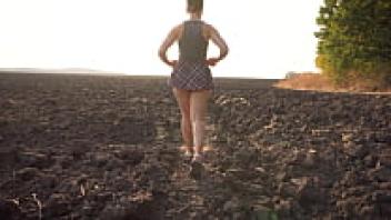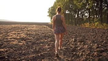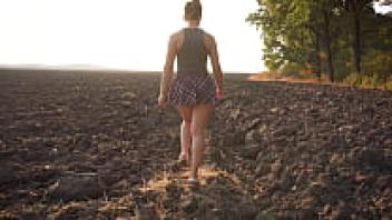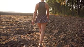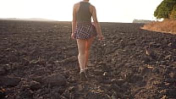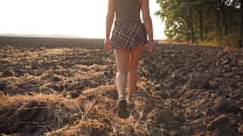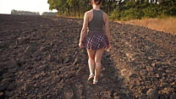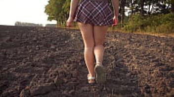 A gorgeous girl in a school uniform walks outside while flaunting her full back panties and upskirt.