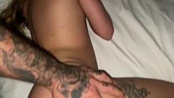 In an amateur anal sex video, a cheap stripper fists her own ass. A girl with tattoos wearing fishnet bodystockings and heels