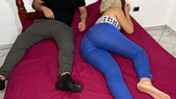 My lovely stepmother lounging in tight jeans