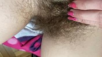 extreme close-up of my enormous bush and hairy pussy Hairy fetish in 4K HD video