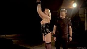Tied up and treated like a slave, a bound subbabe has rough BDSM sex.