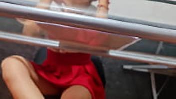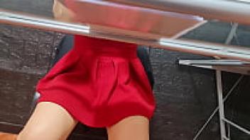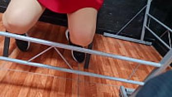 Nataly, a Mexican insurance salesperson, displays her hair in an upskirt.