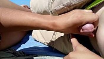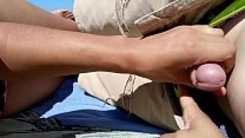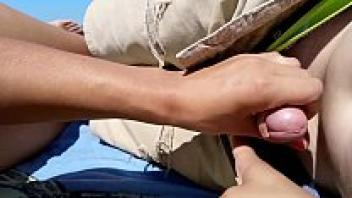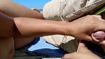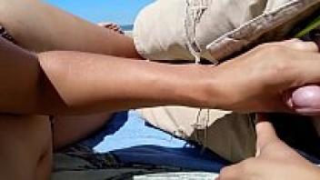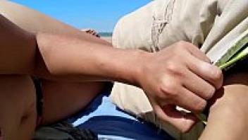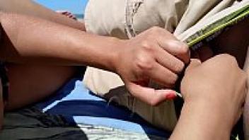 On a public beach, a girl masturbates her partner.