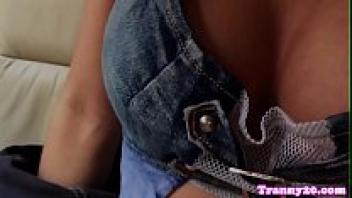 Before having sex, the attractive ladyboy puts on cosmetics.