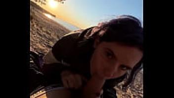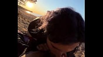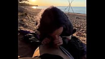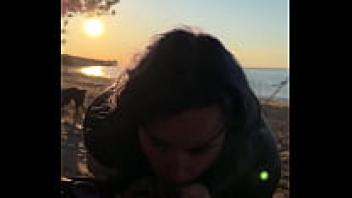 On the beach, blowjob