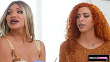 Barebacked Latina trans Jessy Dubai and trans Rubi Maxim in a three-way