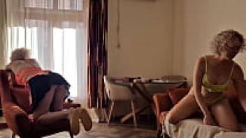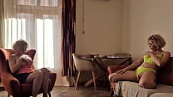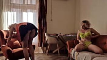 A mature busty enjoys fingering the juicy pussy of her stepdaughters.