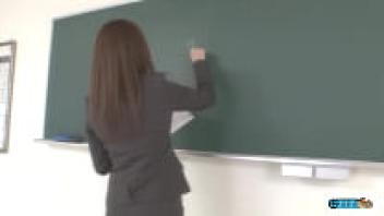 An unexpected gangbang and bondage for a gorgeous teacher in the classroom