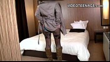Virginie, a 19-year-old adolescent, performs porn casting