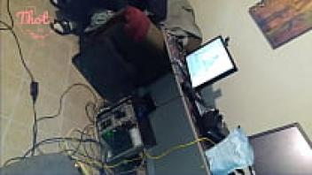 Ebony porn: A black stepdaughter witnesses her stepfather jerking away while wathing at her.