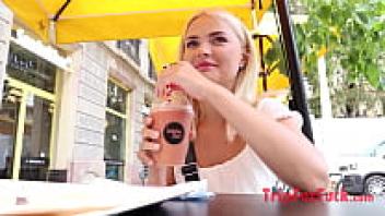 Valeria Fuentes, a lone blonde with long hair, is shown in 4K masturbating with a large dildo.