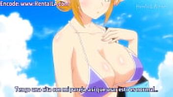 Adorable blonde hentai on the beach