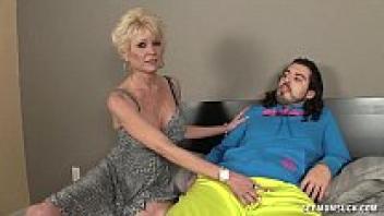 A young man is sucked by a mature babe.Boner