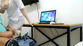 While stroking the patient's prostate, the nurse performed a blowjob.