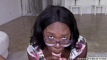Adorable Black Adolescent Gets a Big Facial on Her Glasses and Does a Messy Blowjob
