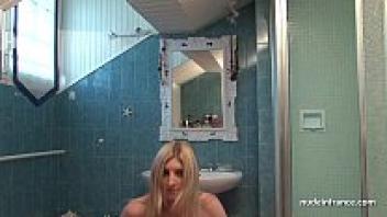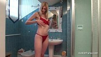 Masturbating with oil and a toy while fingering and fisting a busty French woman