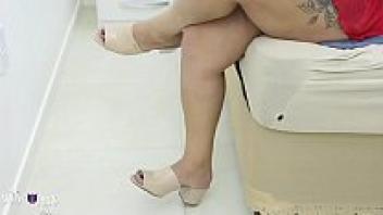 Stepmother was seen squirting and masturbating from her hairy pussy by her stepson.