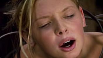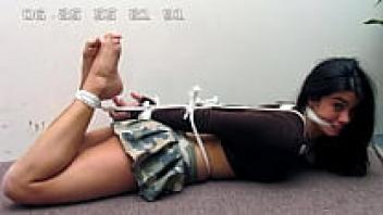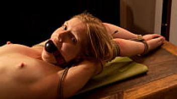 A babety blonde had a bondage slave girl bind up her pussy fingering.