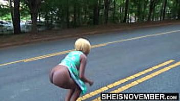Sexy Freaky Spinner Sheisnovember Wiggles Her Big Ass Cheeks, Asshole, and Shaved Pussy in a Short Mini Dress Upskirt with Curvy Thighs Exposed in Public, Crawling Into the Middle of the Street For Attention