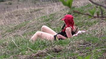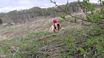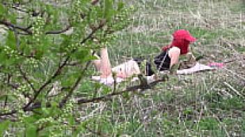 Voyeur spys on a female with a large ass who masturbates outside. Organic masturbation with a cucumber.