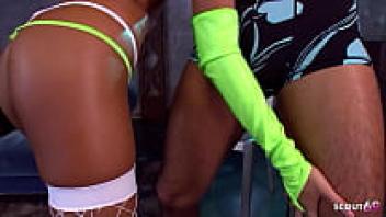 Petite Japanese blonde Lapdance Girl seduces to oiled uncensored Creampie Sex with Client
