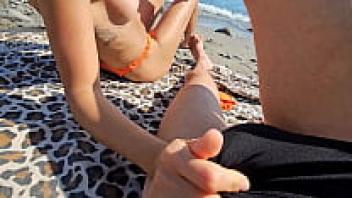 MissCreamy: French Teacher Nudist Beach Blowjob in Public to Voyeur with Cumshot