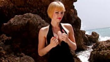 Big Blonde Minger Tits with stubby armpits on the beach