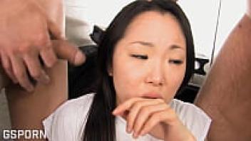 JAV Double Creampie, uncensored MMF Threesome for Japanese Teens with Skinny Little Tits