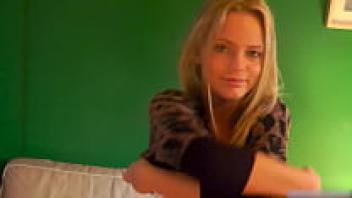 An amateur blonde with long legs begs