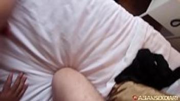 Tight pussy Chinese student rides massive white cock in a German hotel room.