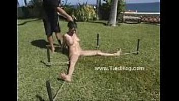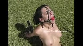 Busty babe naked in bondage video