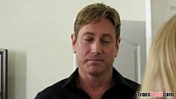 Sex massage from busty ladyboy shemale Green who rides him anal on top